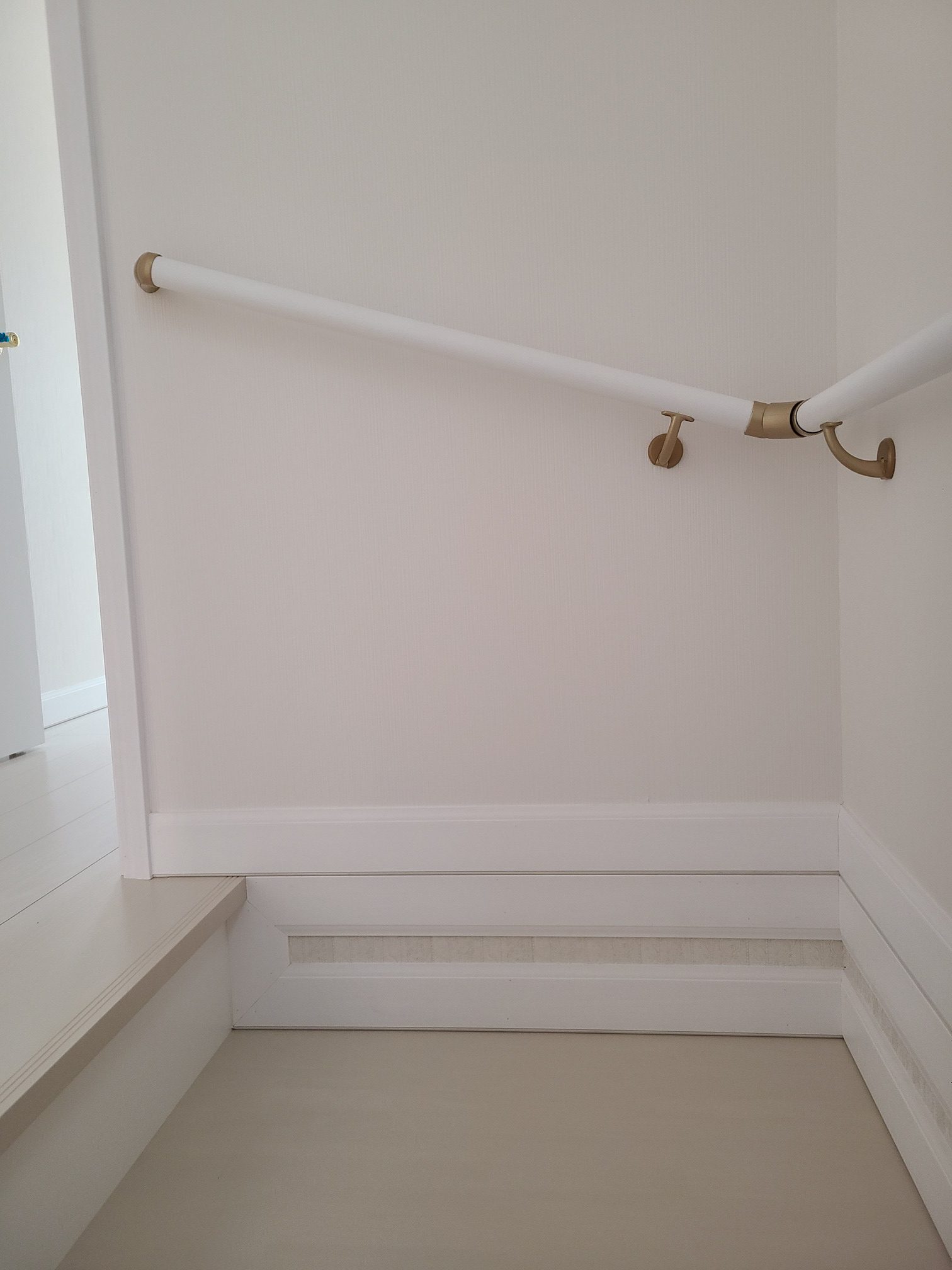 白を基調とした手すりに金のブラケットがおしゃれです。