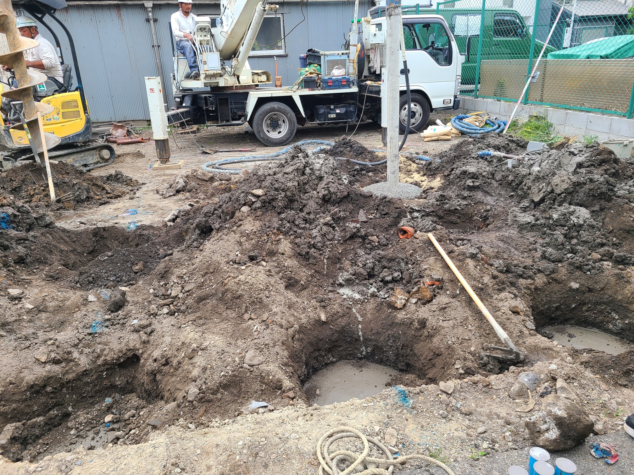 湿式柱体改良工事は土中水分が多い地盤の改良に適しています。